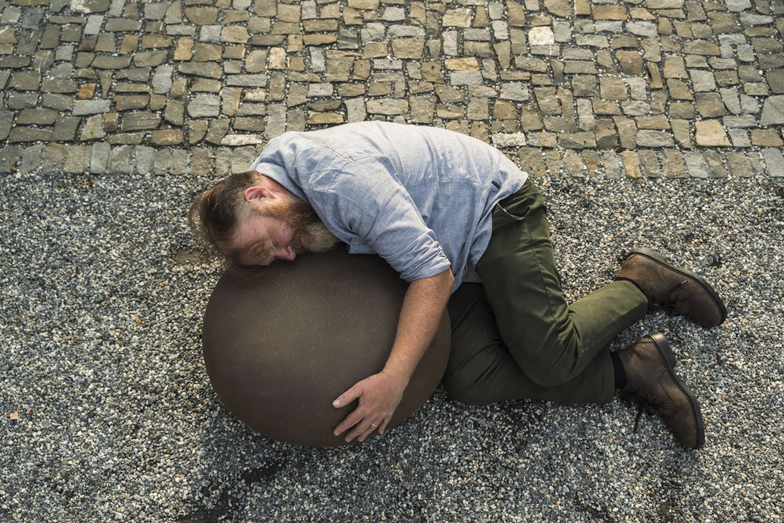 Unter mir der Boden, ein Terrazzo mit eingelegten roten Verrucano- und den grünen Andeersteinen. Haben Sie schon realisiert, dass die grünen Steine zunehmen, sich verdichten, grösser werden, je näher sie zum Garten kommen? Über mir die filigra- nen Lampen, wie goldene Kugeln, die vom Himmel fall en. Und plötzlich denke ich an den Planeten Mars. Wieso der Mars, mögen Sie denken. Aber wissen Sie was? Für mich ist es genau so. Diese Ecke hier ist mein kleiner Mars, mein Schreibort. Inspiration.