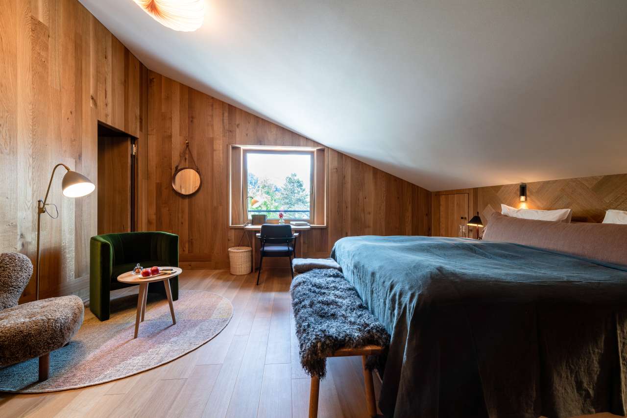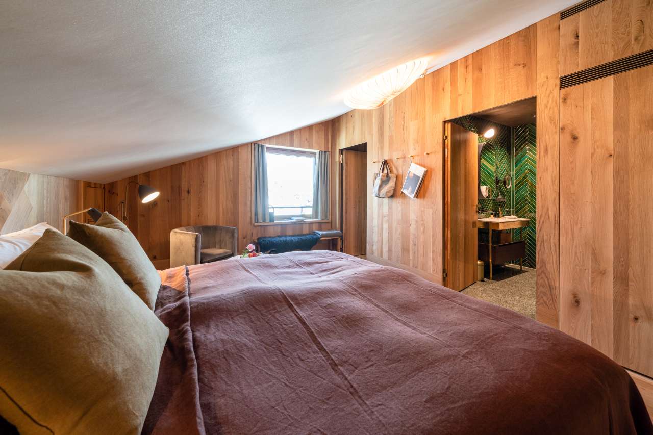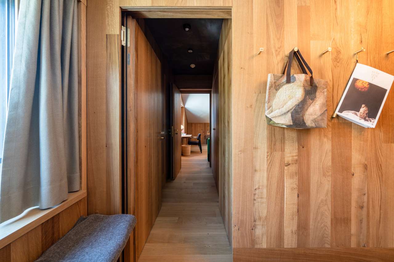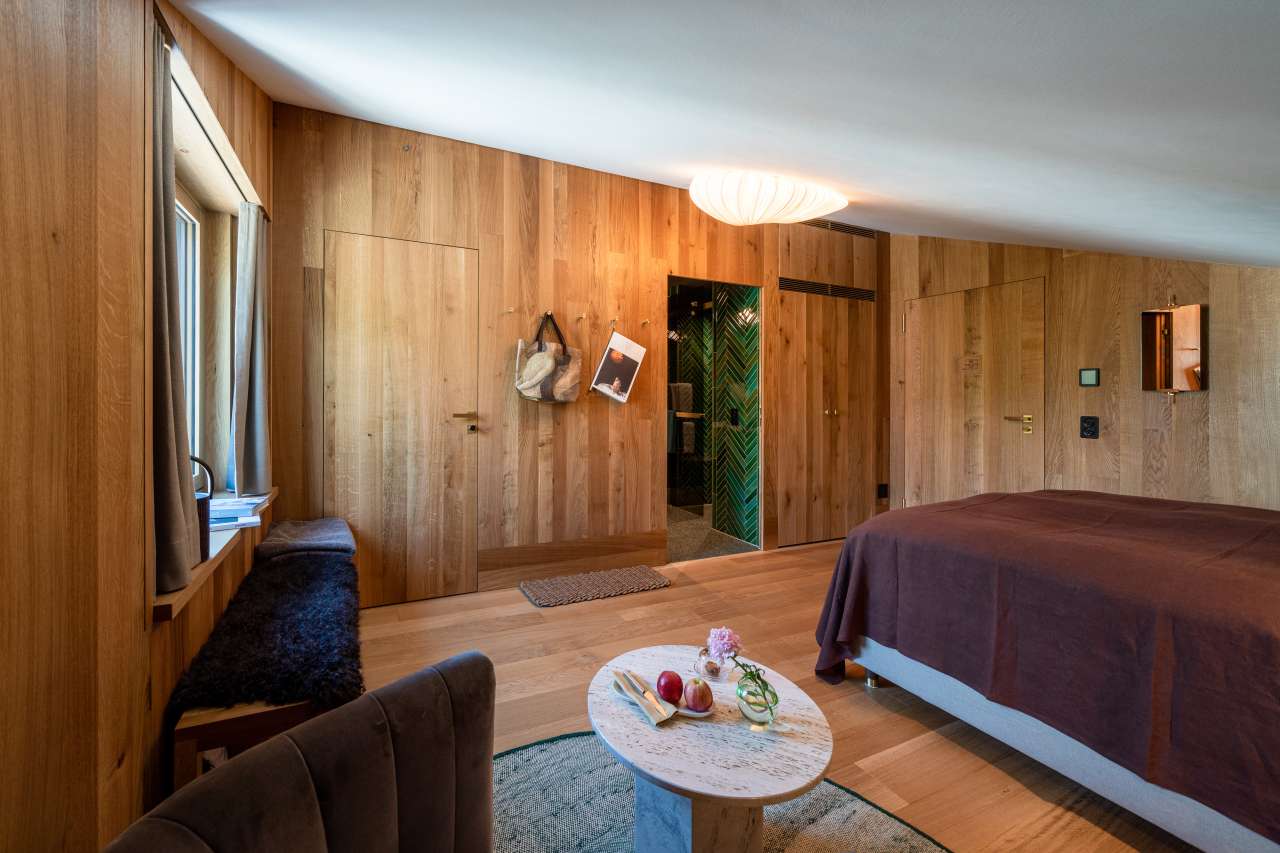 Im dritten Stock, nebst der Treppe auch über einen Lift erreichbar, befindet sich das Familienzimmer, welches die beiden Zimmer Truuba und Trüübli mit einem exklusiven Gang verbindet. Dank einer grosszügigen Wohnfläche, Einbauschränken und zwei Badezimmern hat es ausreichend Platz für die ganze Familie. Allen Gästen stehen mit dem Kissenmenü verschiedenste Kissen zur Auswahl.